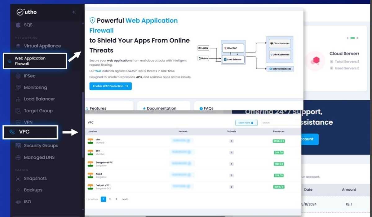 Alongside VPC, Utho Cloud has rolled out its Web Application Firewall (WAF)—a robust, integrated solution to defend against today’s most dangerous cyber threats, including DDoS attacks, SQL injections, and cross-site scripting (XSS).